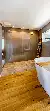 Ob finnische Sauna, Kombi-Sauna oder Dampfbad ist eine Frage der persönlichen Vorliebe, ebenso die Entscheidung, ob Sie ein Modell mit Glas- oder mit Holzwand wählen. In jedem Fall plant man von Anfang an eine Dusche mit Schwallbrause und Kneippschlauch in der Nähe der Sauna ein. Ausreichend Ablagemöglichkeiten für Zubehör wie Bademäntel, Saunatücher, Aufgusszubehör usw. denkt man am besten ebenfalls von Anfang an mit. Und bis zu einem geeigneten Ruheraum sollten es vom Badezimmer mit Sauna aus nur ein paar Schritte sein, damit das Wellness-Ambiente perfekt wird.