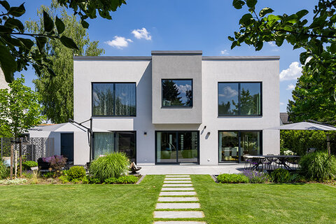 Bereits in der Entwurfsphase stand fest: Die äußere Gestaltung soll durch Symmetrie und einer harmonischen Linienführung überzeugen, die dem Gebäude einen zeitlosen Charakter verleiht. Im Inneren standen die Umsetzung individueller Raumwünsche sowie eine funktionale Grundrisslogik im Mittelpunkt – abgestimmt auf den Alltag und die Bedürfnisse der Bewohner. Individuelle Ausstattungswünsche wie eine private Sauna sowie ein stilvoll integrierter Gaskamin ergänzen das Wohnkonzept und schaffen besondere Rückzugsorte im Alltag.