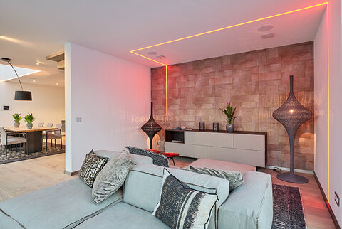 Das Haus erledigt die Aufgaben in puncto Sicherheit, Komfort und Energieeffizienz von selbst. Sollten Sie die durchdachten Abläufe beeinflussen wollen, so können Sie dies jederzeit über die Touch-Taster an den Wänden tun.