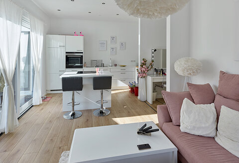 Wenn etwas ohne direkten Kontakt angeliefert werden soll, ist ein geräumiger Eingangsbereich mit Vordach und Gegensprechanlage ideal. Auch ein zusätzlicher Zugang durch die Garage oder ein Windfang mit zweiter Tür im Inneren kann als Schleuse dienen. Das ist schon in "normalen" Zeiten sinnvoll, wenn zum Beispiel kleine Kinder oder Haustiere davon abgehalten werden sollen, nach draußen zu laufen. Je nachdem, wie großzügig Sie planen, ist auch eine separate Wohneinheit mit eigenem Eingang und Badezimmer eine Überlegung wert. Sie lässt sich zur Isolierung einzelner Personen, aber auch für Pflegepersonal, als Büro oder als Gästebereich nutzen.