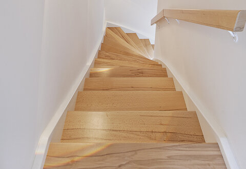 Für eine Holztreppe spricht die warme und wohnliche Atmosphäre. Wer gerne eine Holztreppe möchte, sollte sich für eine Hartholzart, wie Buche, Eiche oder Ahorn entscheiden. Mit einer besonderen Lackierung sind die Holztreppen langlebig und pflegeleicht. Alternativ kann die Oberfläche auch gewachst oder geölt werden. Holzstufen lassen sich auch gut mit einem Metallgerüst kombinieren.