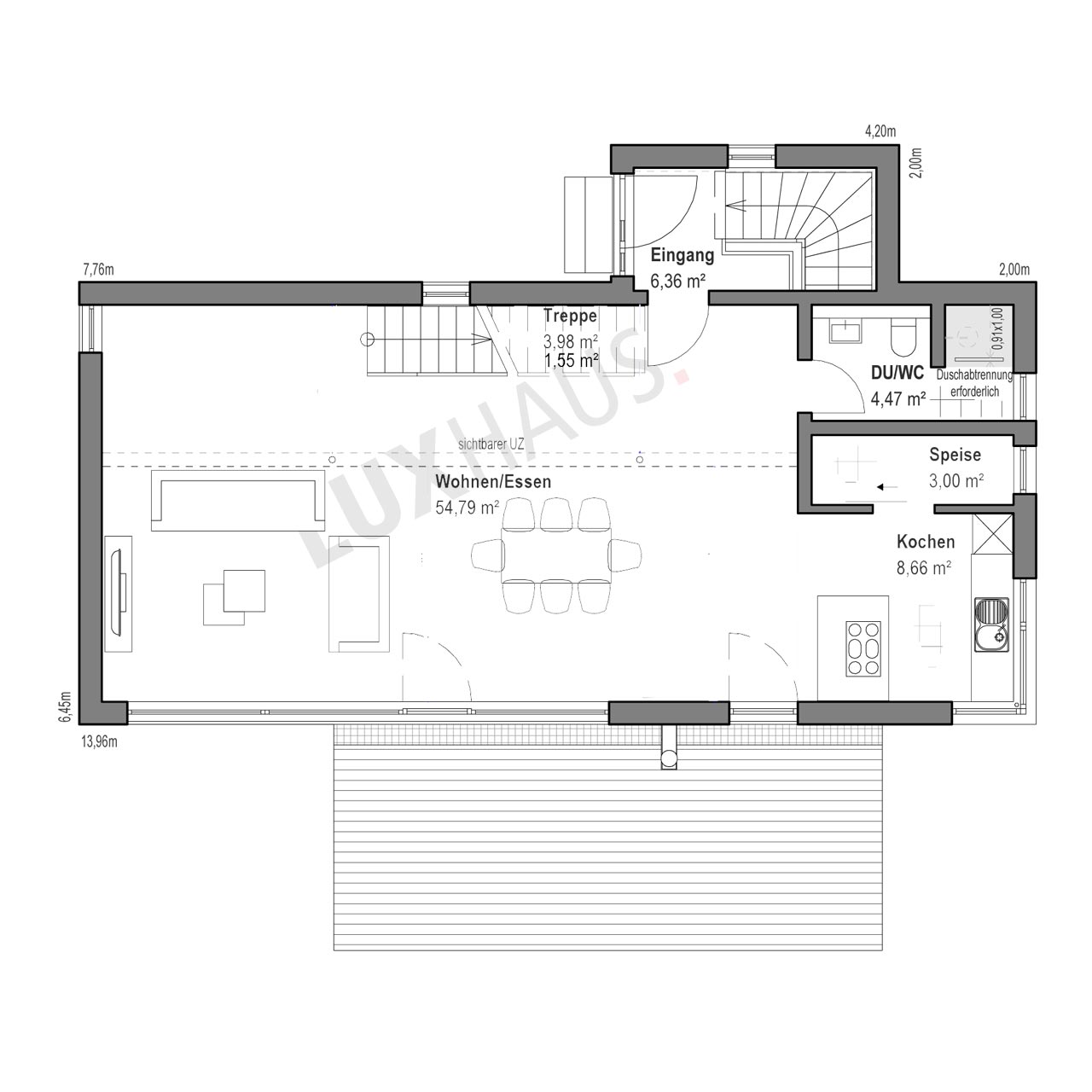 Das lange, schmale Haus bietet durch seine intelligente Planung und hochwertige Bauweise ein Maximum an Wohnkomfort. Großflächige Fensterfronten bringen viel Tageslicht in den Innenraum, während der durchdachte Grundriss für eine optimale Nutzung der Wohnfläche sorgt.