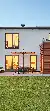 Dieses Haus beweist, dass der traditionelle Landhausstil auch modern interpretiert werden kann. Die schlichte weiße Fassade wird durch anthrazitfarbene Fensterrahmen und einen markanten Anbau mit Lärchenholzverschalung ergänzt. Der Anbau setzt mit seiner modernen Gestaltung einen spannenden Kontrast und bietet auf seiner Dachterrasse zusätzlichen Freiraum zum Entspannen. Die Kombination aus klassischen und zeitgemäßen Elementen macht dieses Haus zu einem perfekten Beispiel für ein modernes Haus im Landhausstil.