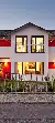 Das Einfamilienhaus mit Veranda beeindruckt durch seine moderne und zugleich zeitlose Architektur. Die weiß-rote Putzfassade verleiht dem Gebäude Frische und Charakter, während dunkle Fassadenelemente gezielt Kontraste setzen. Die symmetrische Fensteranordnung bringt optische Ruhe ins Gesamtbild – ein durchdachtes Zusammenspiel aus Design, Funktionalität und Ästhetik.