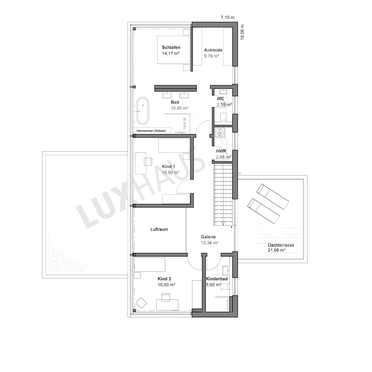 Ein modernes Refugium, in dem Rückzug unter hellen, lichten und offenen Bedingungen stattfinden kann.