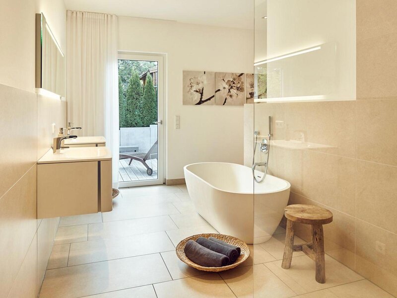 Neben den offenen Wohn- und Gemeinschaftsflächen gibt es private Rückzugsorte: Schlafzimmer mit Ankleide, ein großzügiges Bad mit Sauna sowie ein flexibel nutzbares Hobby- und TV-Zimmer. Hier vereinen sich Erholung, Funktionalität und Komfort.