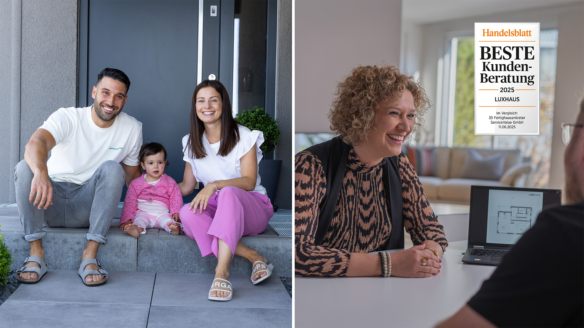 LUXHAUS wurde vom Handelsblatt mit dem Siegel „Beste Kundenberatung 2025“ im Bereich Fertighausanbieter ausgezeichnet.